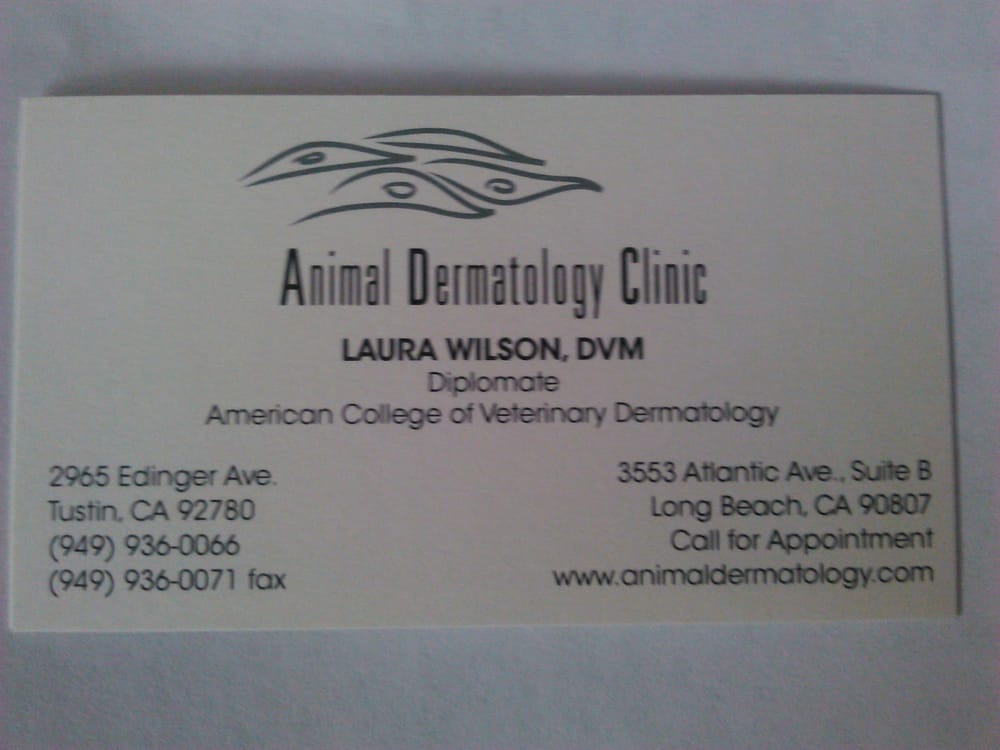 I drove all the way to tustin for a 2nd opinion, when another animal derm in the valley couldn't help my dog's hairloss. She also enjoys outdoor and culinary adventures, such as rock climbing, hiking, spending time at the beach, baking sourdough bread and vegetable fermentation. The board certified dermatologists at animal dermatology clinics are global leaders in the research, diagnosis, treatment, and education of dermatological conditions affecting pets and have pioneered cutting edge treatments for allergic skin conditions, ear disease, food allergies and other acute and chronic skin disorders affecting dogs, cats and horses.